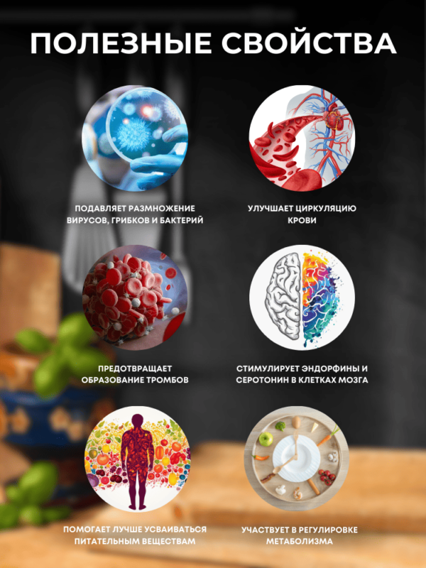 Он не только вносит свой неповторимый аромат и острый насыщенный вкус в блюда, но также подчёркивает вкус других ингредиентов.