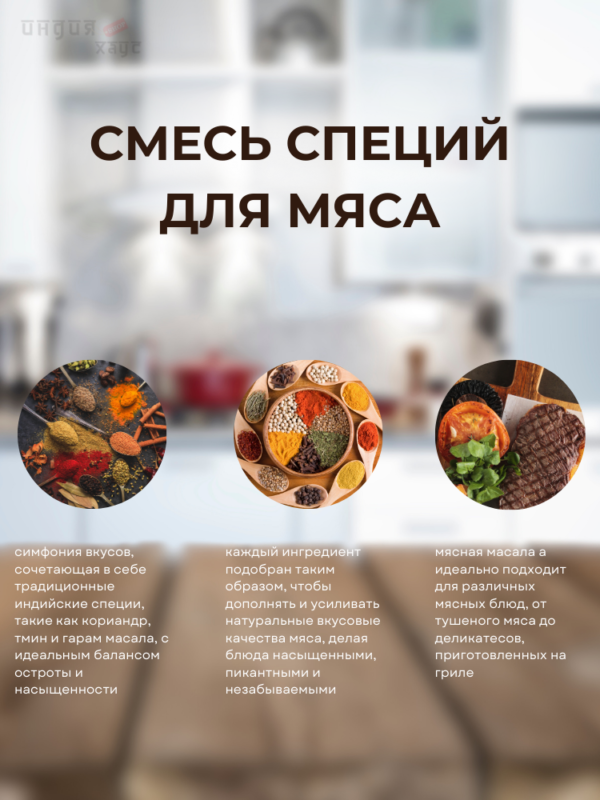 Приправа для мяса Meat Masala содержит только натуральные травы и ингредиенты.