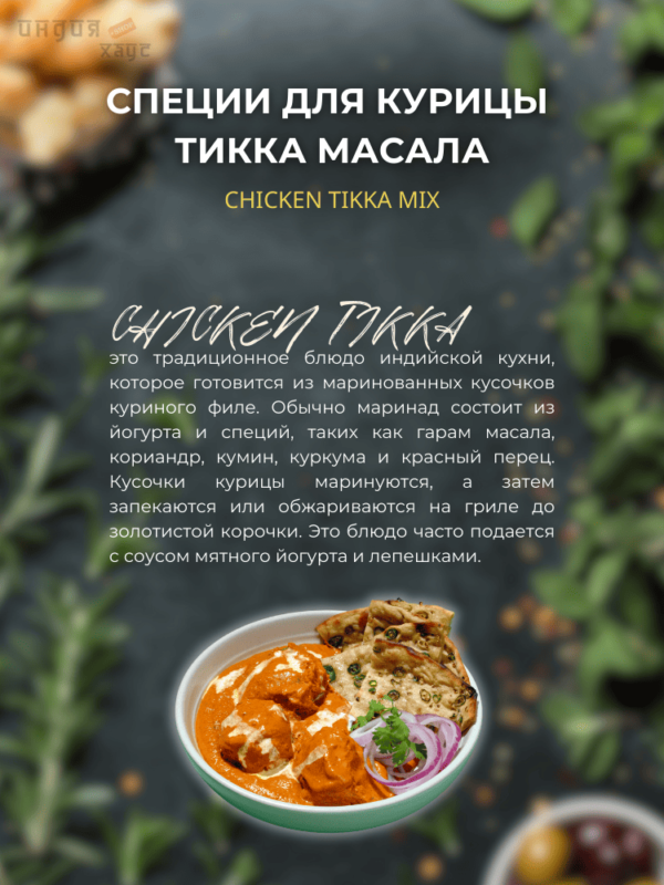 Цыпленок Тикка Масала — символ индийской кухни, известный курицей, приготовленной на углях в изысканном сочетании специй.