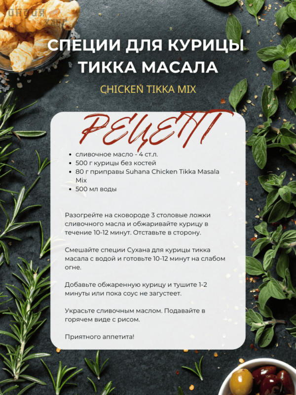 Приправа Тикка Масала — ароматная смесь специй для приготовления популярного блюда из курицы.
