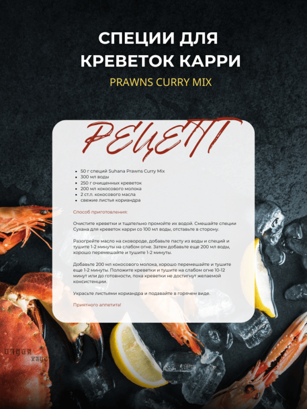 Креветки Сухана с карри — это смесь специй, из которой можно приготовить вкуснейшее карри с креветками. Она обладает пряным вкусом, который сделает ваше блюдо более ароматным.