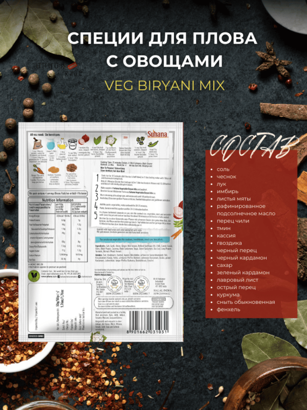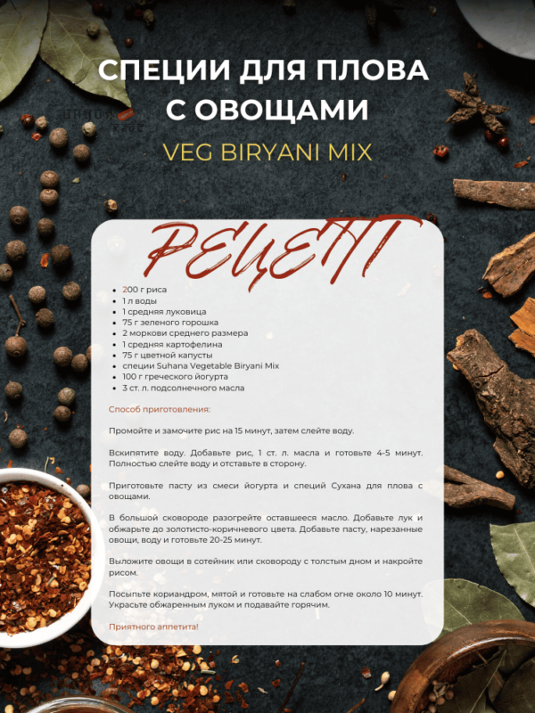 Смесь специй Veg Biryani mix идеально подходит для приготовления риса и плова с овощами.