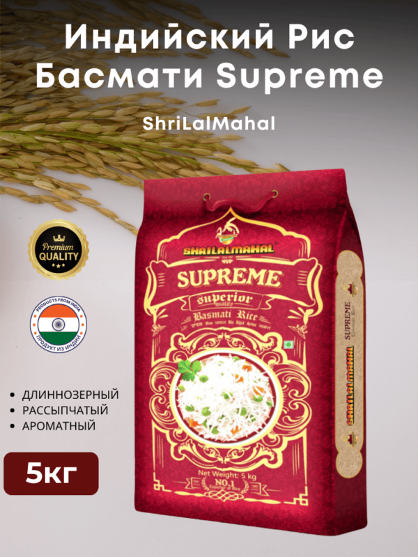 Индийский Рис Басмати Supreme ShriLalMahal. Пропаренный.