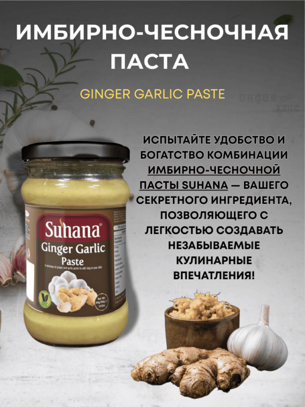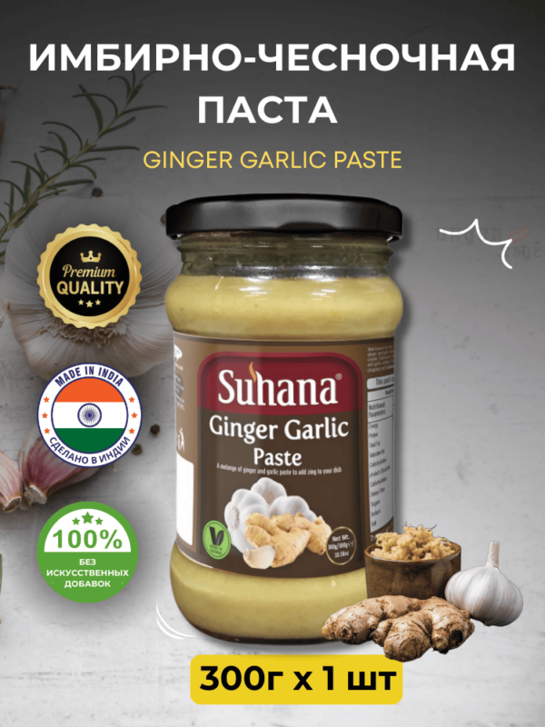 Испытайте удобство и богатство комбинации имбирно-чесночной пасты Suhana — вашего секретного ингредиента, позволяющего с легкостью создавать незабываемые кулинарные впечатления!