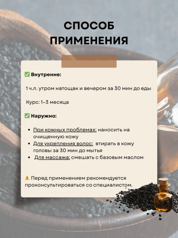 Вкус у данного масла более мягкий, по сравнению с маслом из эфиопских семян.