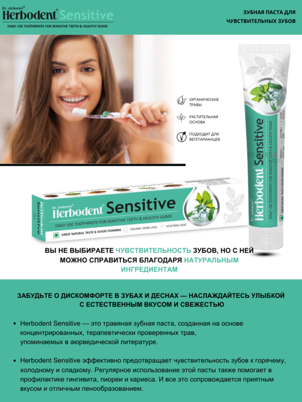 Зубная паста для чувствительных зубов Хербодент Доктор Джейкар (Herbodent Sensitive toothpastе Dr. Jaikar) 100г