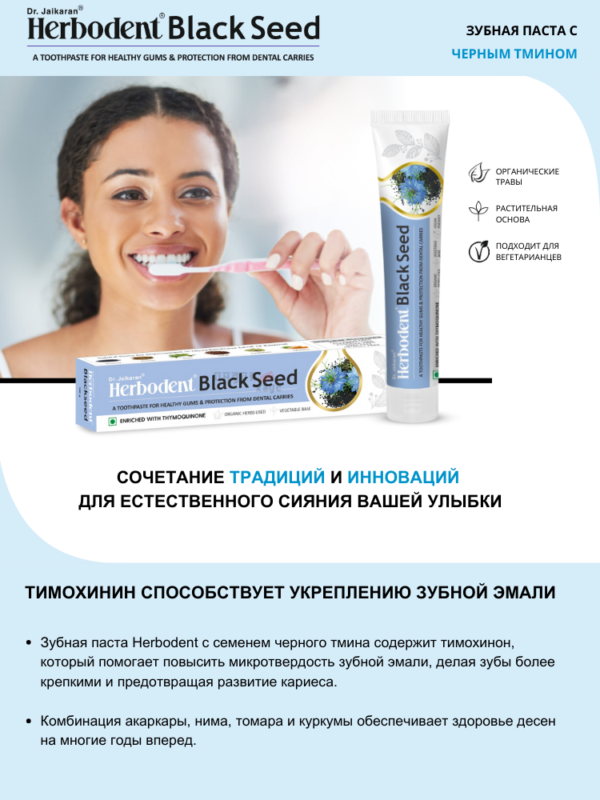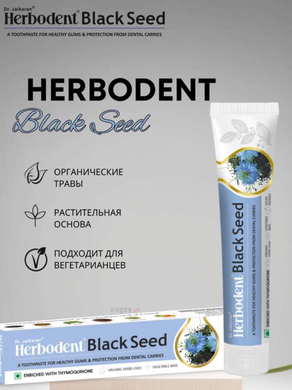 Натуральная зубная паста Herbodent Black Seed с экстрактом черного тмина с противовоспалительным и отбеливающим действием.