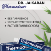 В состав «Термодента» входит нитрат калия, многочисленные растительные экстракты, лечебные коренья и цветы. В пасте отсутствуют какие-либо искусственные ингредиенты и абразивные вещества, что позволяет вовсе не травмировать полость рта и эмаль зубов. Приятный свежий вкус позволяет проводить процедуру чистки зубов с особым удовольствием. Чистота, свежесть зубов и полости рта будут поддерживаться на протяжении всего дня. Паста имеет щадящий состав. Ее можно использовать ежедневно, дважды в день.
