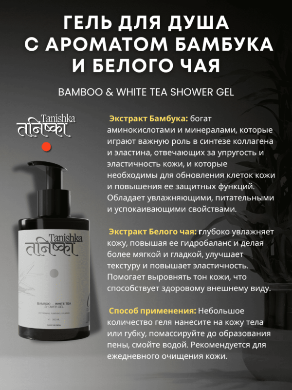 Гель для душа с экстрактом бамбука и белого чая балует чувства и перенесет тебя в настоящий мир расслабления.