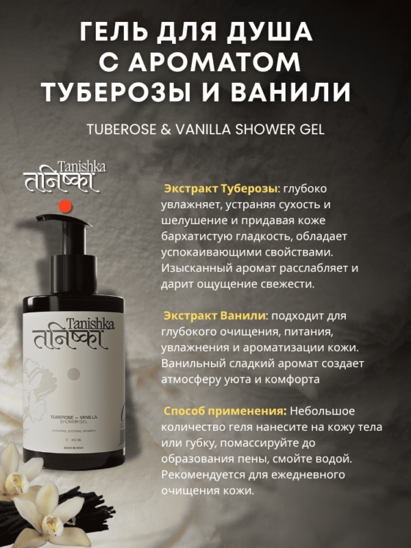 Гель для Душа Tuberose & Vanilla Shower Gel 300 мл Tanishka