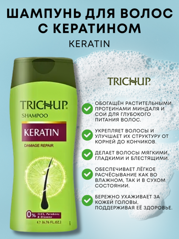 Будьте первым, кто оставил отзыв на “Trichup Шампунь для Волос с Кератином Keratin 200 мл”