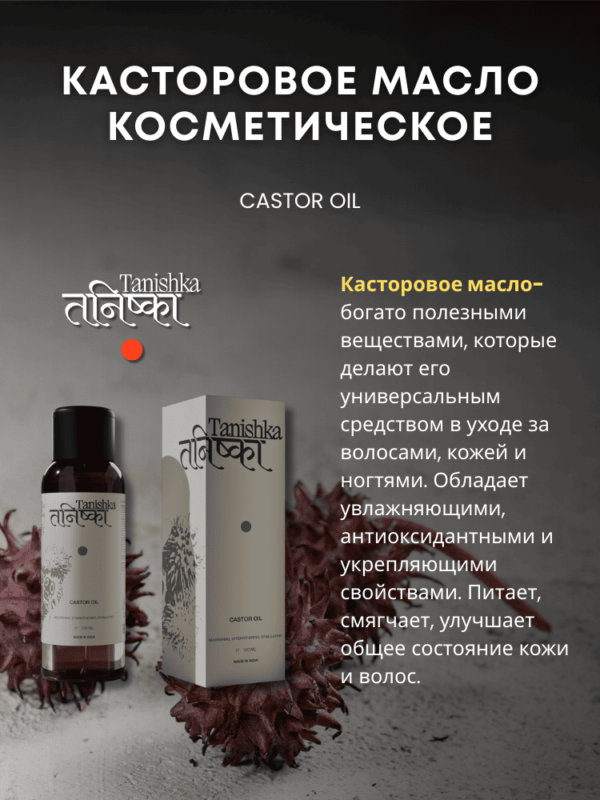 Касторовое масло: богато полезными веществами, которые делают его универсальным средством в уходе за волосами, кожей и ногтями. Обладает увлажняющими, антиоксидантными и укрепляющими свойствами. Питает, смягчает, улучшает общее состояние кожи и волос.